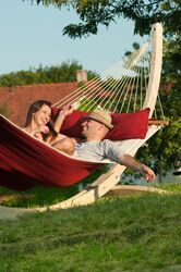 Oboustranná zateplená látka z funkčního vlákna HamacTex zpříjemní poležení za chladných večerů. Je vyrobená z UV-rezistentního, rychleschnoucího vlákna HamacTex®, které je na dotek téměř neroznatelé od bavlny. Látka rychle schne a dobře se udržuje. Užijte si relaxaci v severoamerickém stylu.